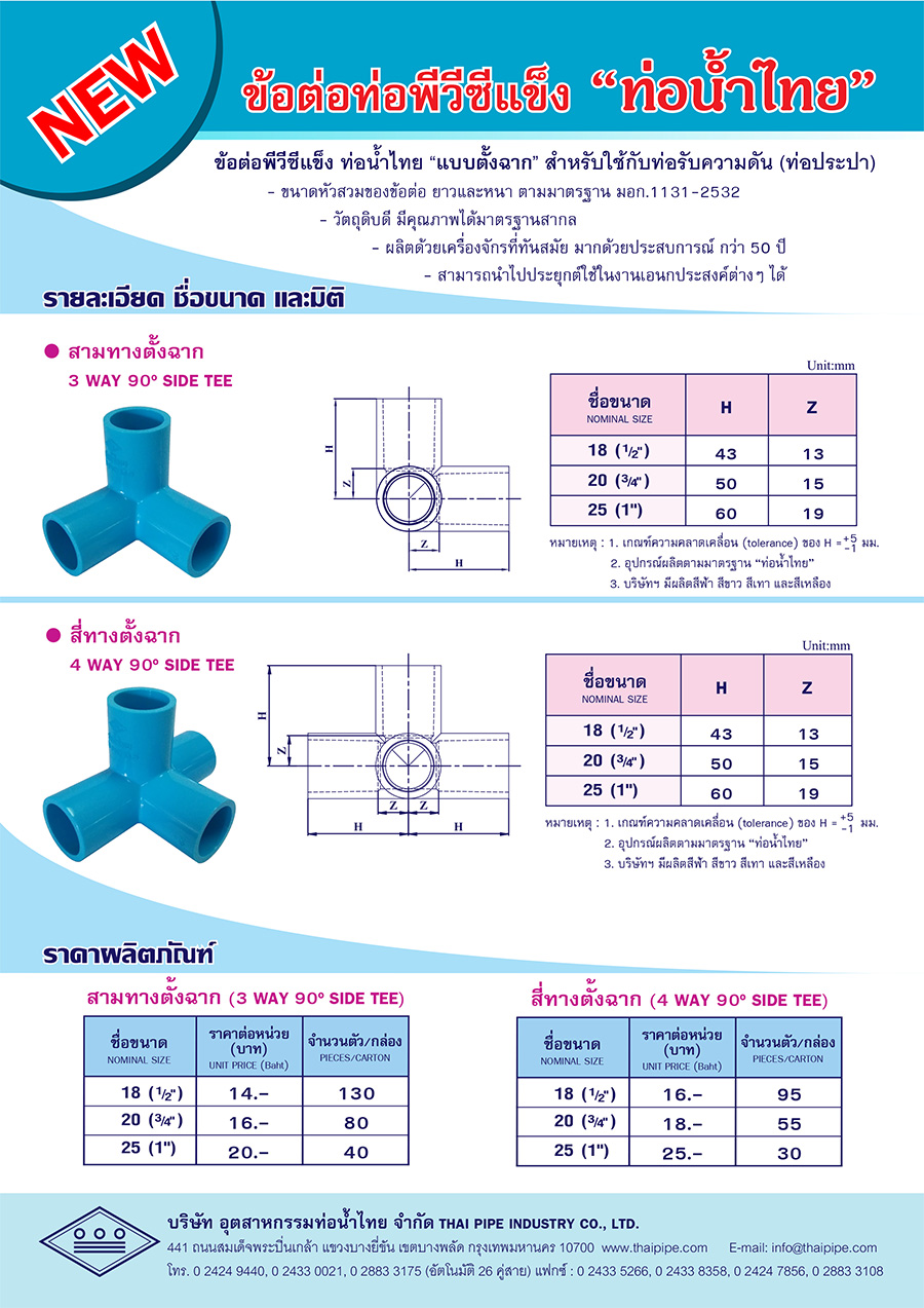 การแบ่งแยกประเภทอุปกรณ์ข้อต่อ"ท่อน้ำไทย"