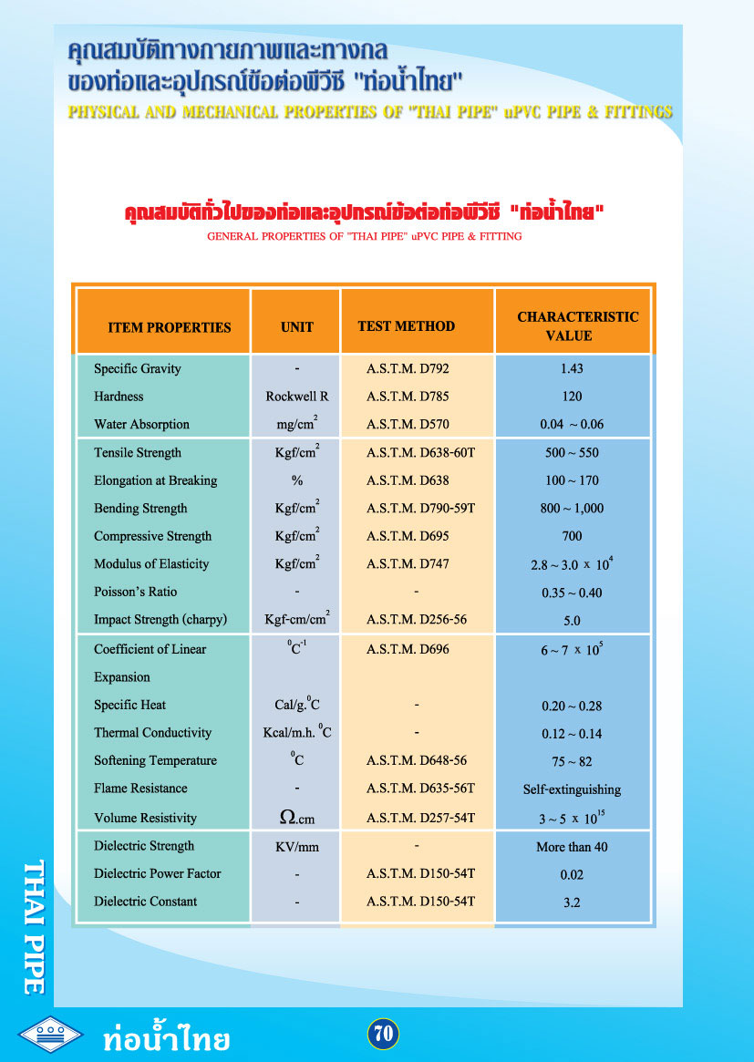 05) คุณสมบัติทางกายภาพ และทางกลของท่อและ อุปกรณ์ข้อต่อพีวีซี "ท่อน้ำไทย"